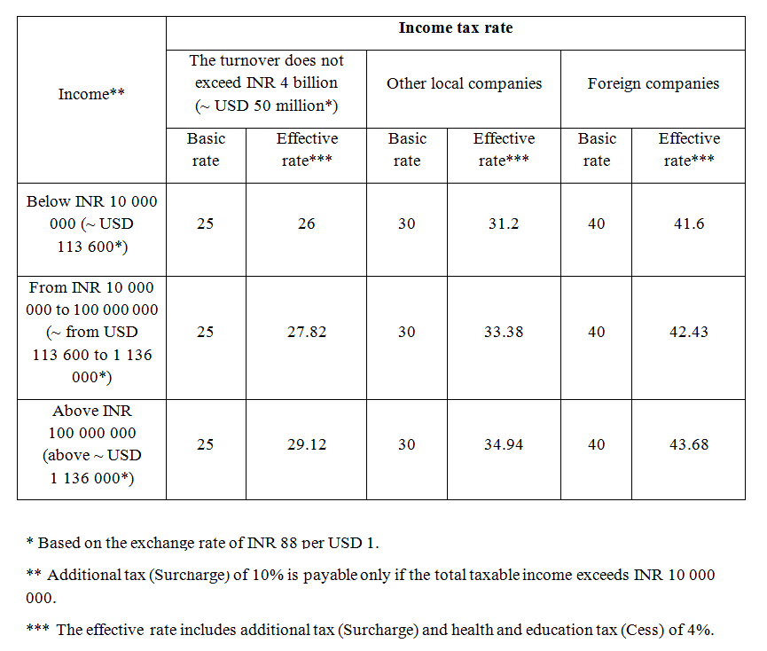 Starting from 2019, local manufacturing companies incorporated on or after 1 October 2019 that commence operations before 31 March 2023 are eligible, subject to certain conditions, for a reduced income tax rate of 15% (plus 10% surcharge and 4% health and education cess).
