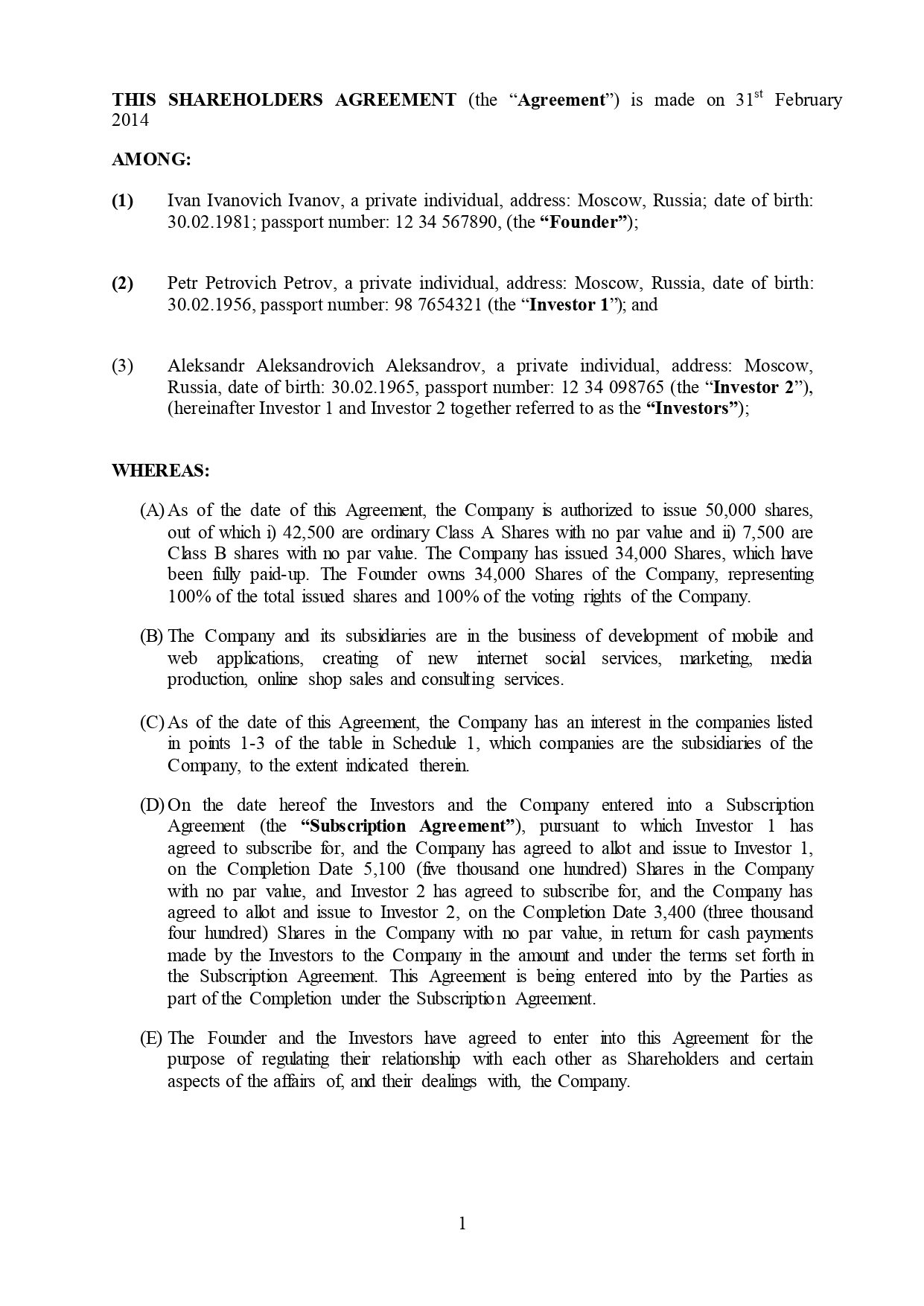 Shareholders Agreement: Когда целесообразно заключать акционерное соглашение и какие отношения оно предназначено регулировать