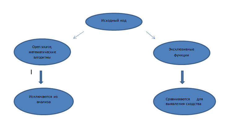 - Как проводится исключение фрагментов кода, полученных из open source, и других составляющих программы, которые правомерно могут быть идентичными, с целью выделения «чистого» кода с оригинальной творческой функциональностью продукта?